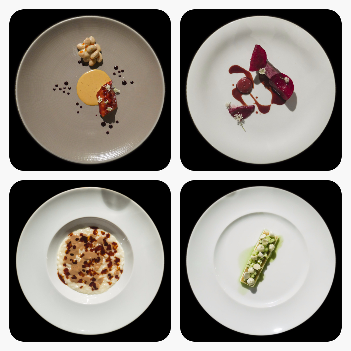 L’aperitivo connota la partenza di un’allure vintage data dal Biancosarti reso più acidulo dall’aggiunta della mela, che accompagna delle chips di tapioca e soia, cipà al caprino con polvere di mate.