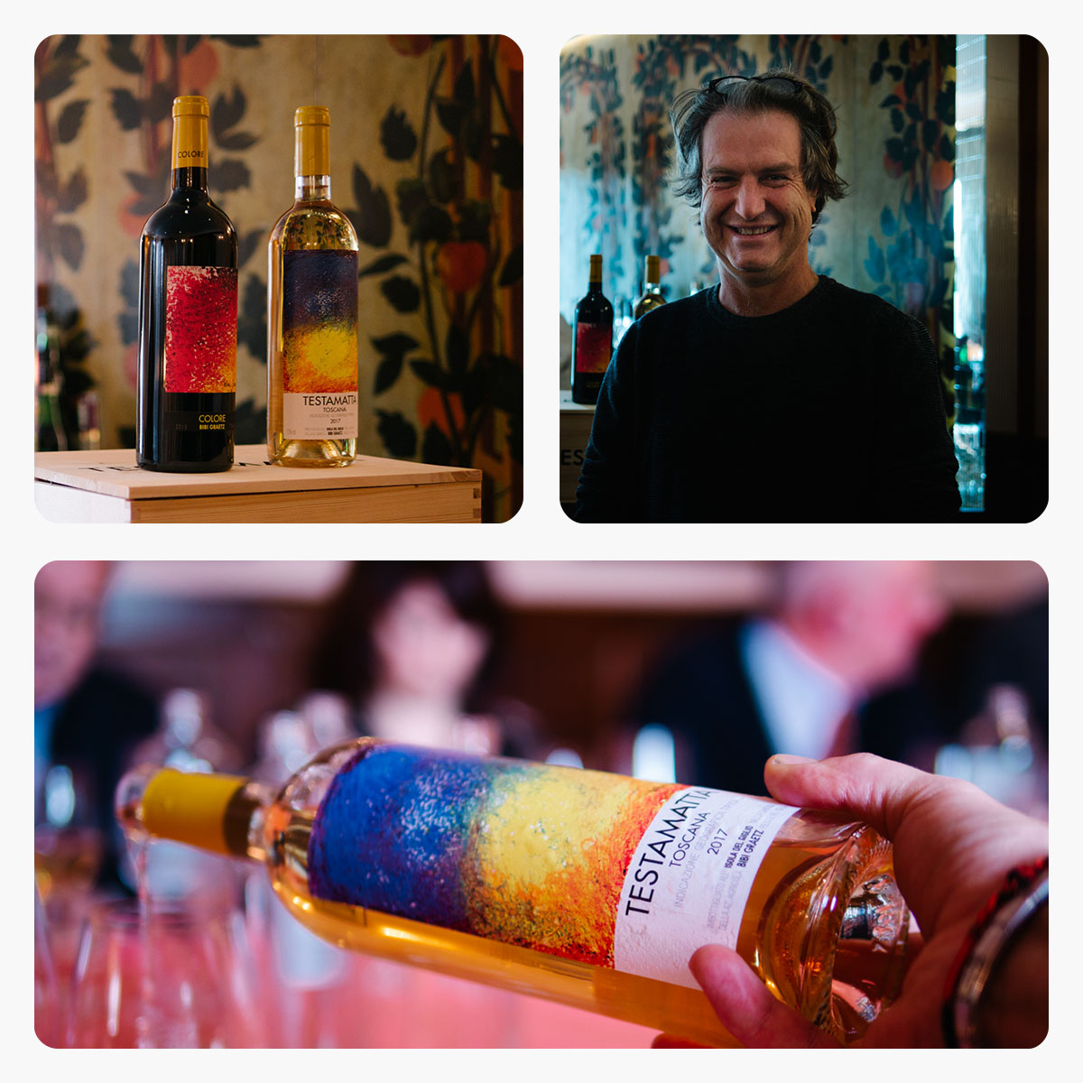“Fiesole – spiega il cinquantunenne imprenditore-artista – è il luogo dove il mio sogno sul vino è cominciato, è qui che è nato Bibi Graetz. È stato naturale in fase di decisione cercare un luogo all’interno del Comune. Devo molto e sono molto legato a questa città. Quando ho saputo che questa bellissima proprietà nella piazza principale era stata messa in vendita non ci potevo credere e ho visto immediatamente la nuova casa per Testamatta e Colore. Come non potevo innamorarmi di questo antico e storico edificio bellissimo? D’altra parte – continua – sentivo che era giunto il momento di lanciarmi in una nuova avventura, di prendere il volo da Vincigliata, perché a castello non avevo più la possibilità di crescere. Volevo in ogni caso restare vicino, per mantenere stretto il legame tra l’attività e la vita quotidiana della famiglia. Sembrava impossibile poter trovare qualcosa che superasse il fascino di Vincigliata. Villa Aurora c’è riuscita.”