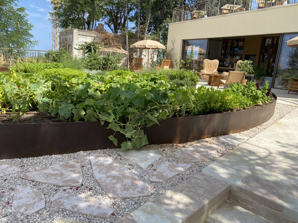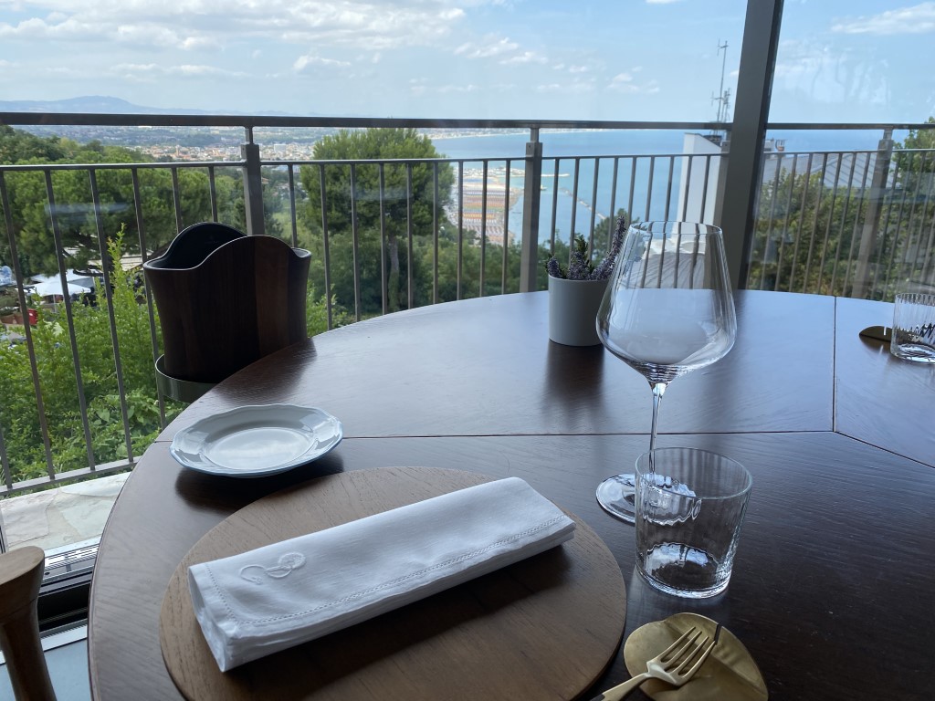 Di una estetica raffinata anche il giardino a spirale di erbe aromatiche all’ingresso del ristorante, preannuncio di quello di un ettaro, poco lontano da lì, affacciato al castello di Gradara, annesso a Casa Marcon, la casa vacanze con sette camere in ristrutturazione. Nuovo progetto che va a unirsi anche ai deliziosi bagni Maristella, proprio nell’ultimo lembo di spiaggia di Gabicce Mare collegati al Monte da un breve sentiero che si inerpica sul pendio del Bartolo.